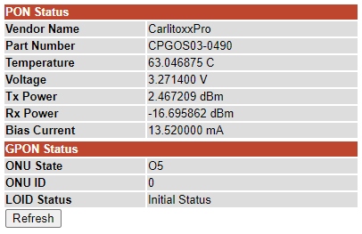 Nach einem weiteren Neustart zeigt die Statusseite des ONT nun folgendes an: